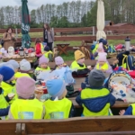 W połowie kwietnia starsze dzieci ruszyły na wycieczkę do jednego z chętniej uczęszczanych miejsc, mowa o Starej Chacie u Kowola w Kluczewie. Zwiedzanie agroturystyki obejmowało, m.in. pokaz kucia podkowy oraz wyrabiania masła, a także dojenia krowy „na żywo”, z możliwością udzielenia zwierzątku wsparcia duchowego poprzez przytrzymanie włochatego ogonka :-). Dzieci zwiedzały przeszło 100-letnią chatę z obejściem, a także przejechały się przyczepą ciągniętą przez traktor po malowniczej okolicy. Jak zwykle masę frajdy sprawił przedszkolakom czas wolny na podwórku zaopatrzonym we wszelkiego rodzaju tradycyjne jeździki, rowerki, pojazdy z przyczepkami, dwu i czteroślady. Agroturystyka „Stara Chata u Kowola” w Kluczewie to miejsce, do którego każdego roku z ogromną chęcią wracamy – bo warto.