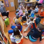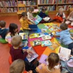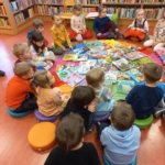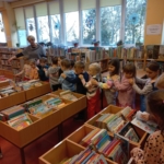 – wyjście Pomarańczowych i Niebieskich Moli Książkowych (gr V i IV) do Biblioteki w Osiedlowym Domu Kultury „Pod Lipami” na lekcję zapoznawczą, dzięki której dzieci poznały budynek, zbiory biblioteczne i pracę bibliotekarki (bibliotekarzy brak na stanie). Zachęcamy do odwiedzania pobliskiej biblioteki – mają świetne książki, które można oglądać i „pochłaniać” na miejscu w przytulnej czytelni :-). W zbiorach znajdują się też komiksy i gry planszowe – dla każdego coś miłego!