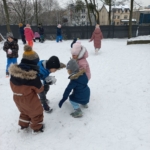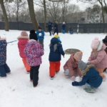 Powitaliśmy też „Panią Zimę” Metodą Porannego Kręgu, co zawsze umożliwia dzieciom wielozmysłowe doświadczanie świata. Zaangażowany był wzrok, dzięki przypisanym Zimie kolorom (biały, niebieski), słuch, dzięki dźwiękom dzwonków i trójkątów, węch (świece i kominki zapachowe), smak (miętowa herbatka) oraz obowiązkowo dotyk, w realizowanych eksperymentach – mroźnych, zgodnie z porą roku. Działo się oczywiście dużo więcej, a żeby się dowiedzieć, o czym mowa, zapraszamy do obejrzenia zdjęć.