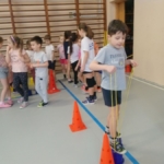 Nasze przedszkolaki biorą udział w projekcie „Od Smyka do Zawodnika” w pobliskim ZSzOS nr 1, w ramach którego raz w tygodniu biorą udział w zajęciach sportowych na terenie szkoły. Dodatkowo, 18 marca „w Zespole Szkól z Oddziałami Sportowymi w Poznaniu została przeprowadzona Olimpiada Przedszkolaka. Głównym celem Olimpiady było uczestnictwo w kulturze fizycznej i dobra zabawa, a nie rywalizacja i zwycięstwo. Naszym celem było zaszczepienie u najmłodszych pasji do sportu, ale także do rozwoju umiejętności, które znacząco wpływają na ich przyszłe życie takich jak: komunikacja współpraca, kreatywne myślenia, motywacja, pewność siebie. W związku z tym każde dziecko zostało udekorowane złotym medalem. Dzieci uczestniczące w Olimpiadzie miały za zadanie pokonanie torów przeszkód, które oparto o naturalnych umiejętności dziecka jak bieg, skok, rzut. Tory przeszkód przeplatane były zabawami, ćwiczeniami.” (c) Facebook Zespołu Szkół z Oddziałamy Sportowymi nr 1. Dziękujemy ZSzOS za aktywną działalność na rzecz zdrowia fizycznego dzieciaków!