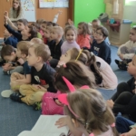 6 grudnia gościliśmy, w ramach Mikołajek, naprawdę wytrawnego iluzjonistę, Lucky Luke’a, którego topową sztuczką, według dzieci, było znikające światełko :-). Również w grudniu dwie grupy (IV i VI) odbyły spacer w śniegu do Księgarni Z Bajki na zajęcia warsztatowe z Panią Doriną Maciejką, autorką książki pt. „O Gwiazdce, która nie świeciła” – dzieci słuchały, bawiły się i działały kreatywnie.