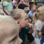 Nasi wspaniali zerówkowicze z grupy III („Smoki”) zaprezentowali kultowe piosenki znane z „Akademii Pana Kleksa” – „Kaczkę Dziwaczkę”, „Kwokę” i „Lenia”. W kolorowych perukach odśpiewali piosenkę M. Jeżowskiej pt. „Tydzień u fryzjera”. Była też „Rzepka” J. Brzechwy, wiersze i piosenki dla rodziców oraz finałowa piosenka „Pożegnanie Przedszkola”. „Smoki” wystąpiły zarówno przed rodzicami zaproszonymi na uroczystość zakończenia roku szkolnego, jak i przed przedszkolakami, które jeszcze nie zdają sobie chyba sprawy z tego, że za rok, dwa, jako następne pokolenia, sami opuszczą mury Przedszkola… 🙂