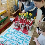 W Tygodniu Wielokulturowym (akcja UNICEF) poznawaliśmy lepiej naszych sąsiadów z Ukrainy – poprzez bajki edukacyjne, zajęcia warsztatowe z Panią Tatianą, która opowiadała o tradycjach (fryzury, stroje i akcesoria ludowe, zwyczaje i rękodzieło), a także nauczyła nas robić lalki-motanki. Malowaliśmy tradycyjną Petrykivkę akwarelami, czytaliśmy baśnie z różnych stron świata, rozmawialiśmy o zwyczajach świątecznych poza granicami naszego państwa. Poszczególne grupy odwiedzili rodzice (dziękujemy!) z propozycją warsztatów kulinarnych. Tydzień Wielokulturowy zakończył się piernikowaniem (gromkim i radosnym) oraz tworzeniem łańcucha choinkowego – ten zdobi już hall Przedszkola, dziękujemy za zaangażowanie :-).