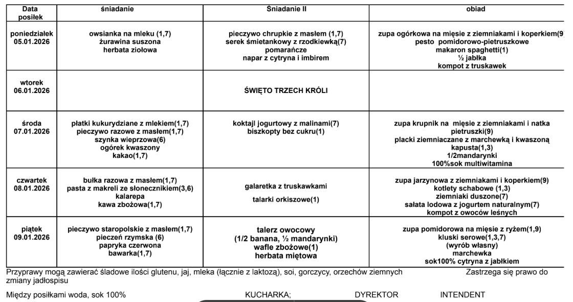JADŁOSPIS - 05.01-09.01.2026 r.